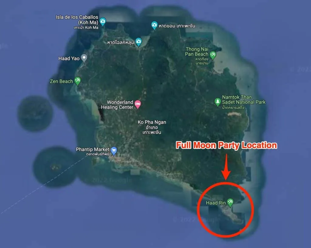 The Full Moon Party takes place on the beautiful island of Koh Phangan, on Haad Rin Beach, which also happens to be one of the most beautiful beaches in all of Thailand.