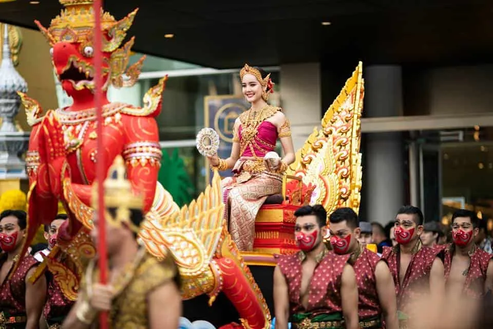 For entertainment during Songkran, folk performances and games are planned. Street parades and Thai beauty pageant events feature traditional attire in Thailand. The Songkran Festival also features street food vendors, Thai dance performances, flag ceremonies, and boat races.