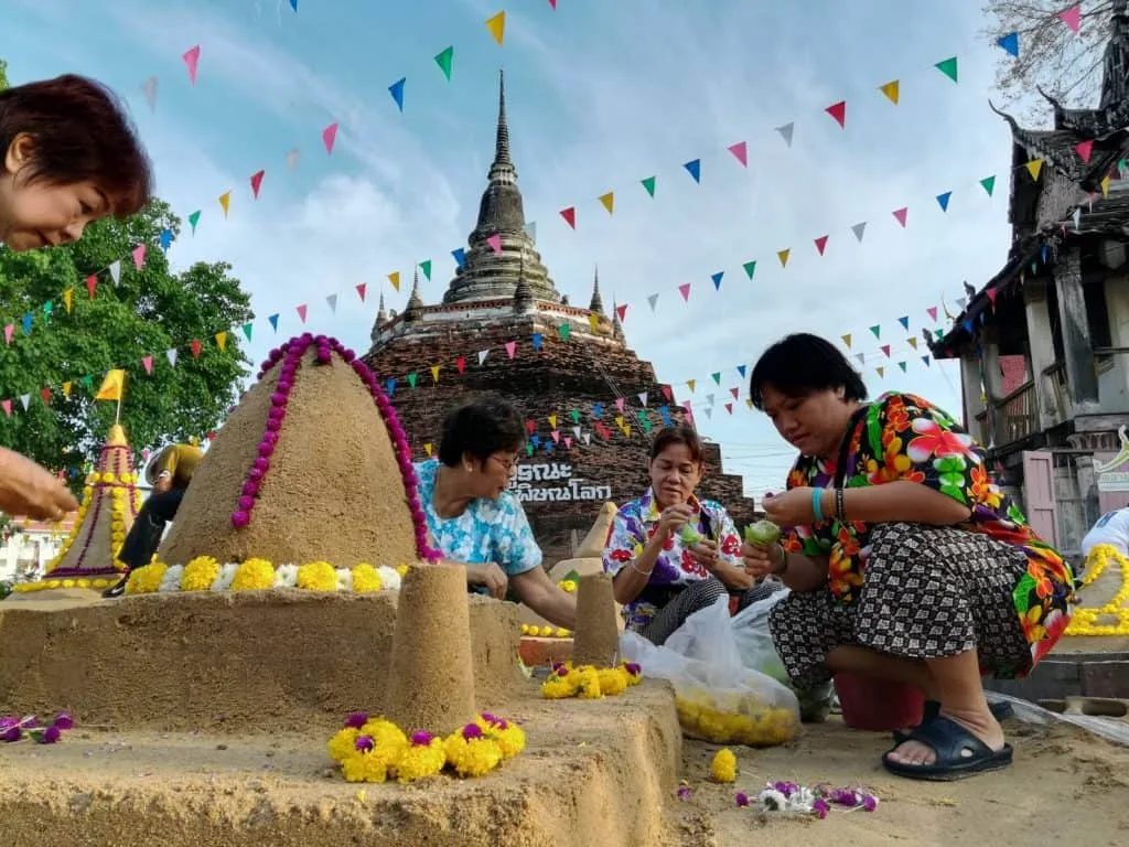 During the Songkran Festival, Thai folks carry some sand to temples to build sand pagodas. Sand pagodas can be constructed, or temples can be repaired using the sand. During Songkran Festival in Thailand, helping with temple upkeep and supporting monks generally is considered good practice.