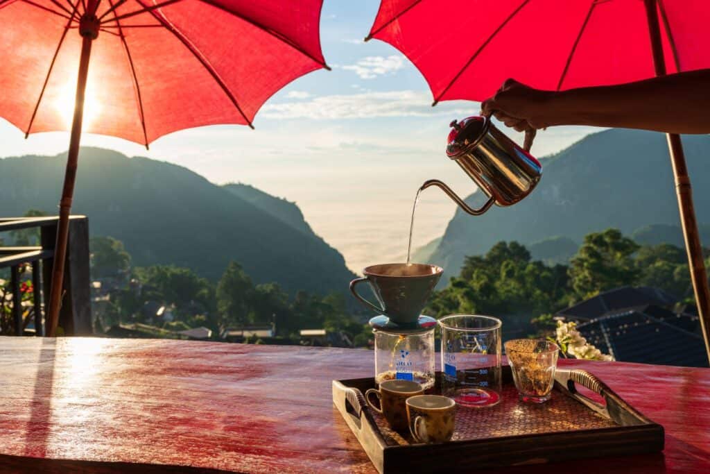 Ban Pha Hi is situated in Pong Ngam Subdistrict, a quaint community nestled along the path from Doi Tung to Doi Chang Mub, descending toward Tham Luang Cave. It’s located approximately 13 kilometres away from Ban Pha Mi, which lies lower on the plains. Originally inhabited by the Akha hill tribe who traditionally grew opium, the landscape of Ban Pha Hi changed around 1981 when the government encouraged coffee cultivation. With the initiation of the Doi Tung development project and coffee research plots in 1988, the residents transitioned to coffee farming as their main livelihood, a practice that persists today. For further details contact , the village headman of Ban Pha Hi Tel. (66)8 9431 7479