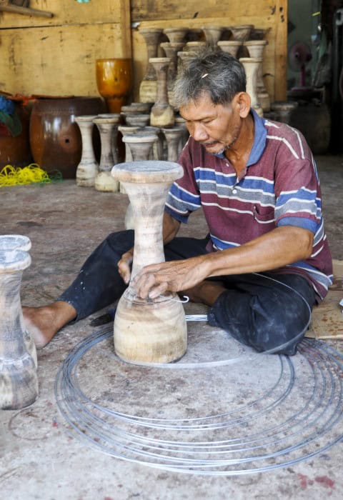 Located in Ekkarat Subdistrict, lies a village renowned for its craftsmanship and heritage: the village of Drum Makers. Since 1927, these artisans have refined their craft, fashioning drums from the supple wood of the rain tree, renowned for its malleable texture. Utilising cow hides to fashion the drum heads, visitors are invited to witness the process of drum-making, from the initial carving of the wood to the final assembly and tuning. These drums, ranging from small to big, including the giant drum, with its imposing dimensions of 36 inches in width and 7.6 metres in length made of 6 pieces of connecting raintree wood, are symbols of the village’s cultural legacy. Visitors are warmly welcomed to marvel at these masterpieces, housed within the residence of the village headman, Mr. Hongfa Yodyoi. Open daily 06.00-18.00 hrs. For further details contact , Tel. (66)8 6379 9186, (66) 3566 1914