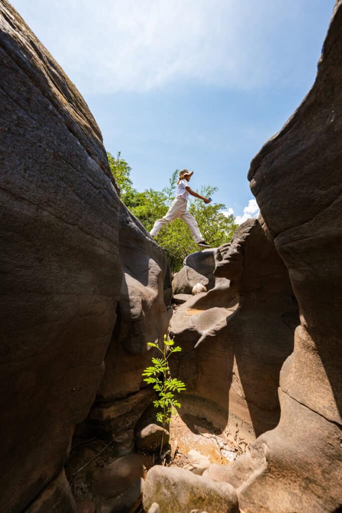 Loei Dun is located in Ban Huai Kapo, Lak Dan Sub-district, Nam Nao District. It features a sandstone formation in the middle of the Loei River that has been eroded over time, creating numerous small and large holes, resembling the famous Sam Phan Bok. This stunning natural formation is a result of natural geological processes. Loei Dan is also a natural and geological tourist attraction, partially designated as part of the Phetchabun Geopark. It is an ideal destination for both tourism and nature education.