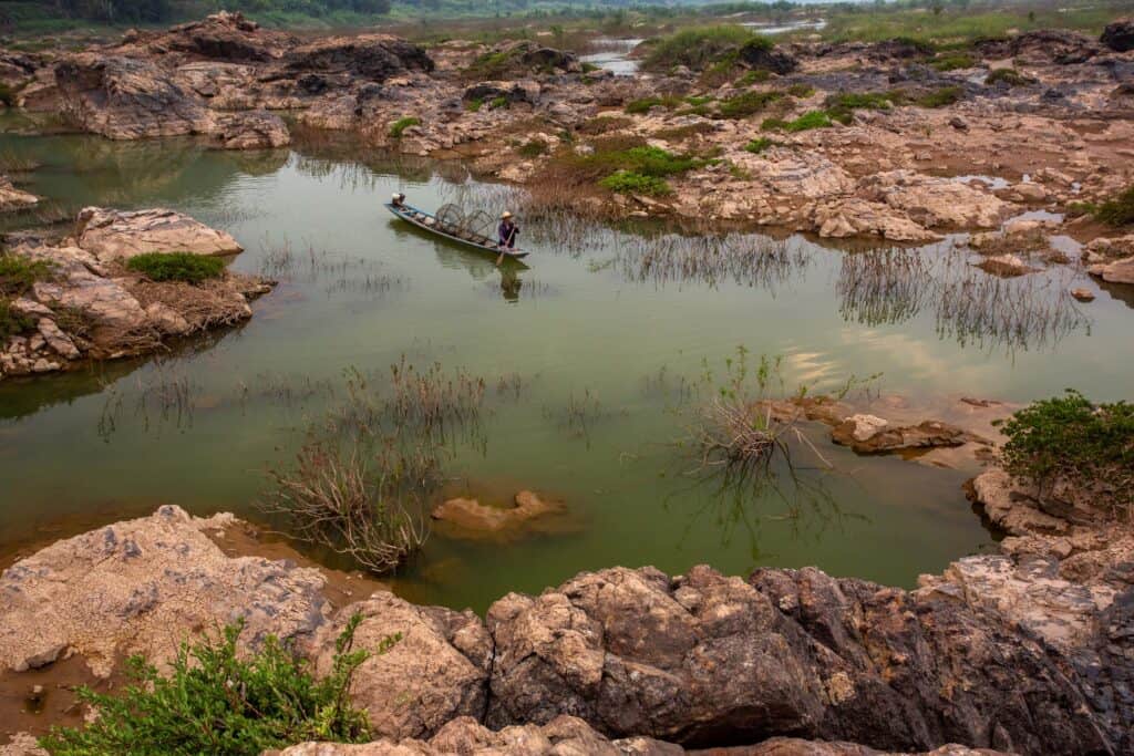 The attraction on the Mekong River is located in Ban Muang, Tambon Ban Muang, Amphoe Sangkhom. When the level of the water of the Mekong River is low, thousand of boulders and rocky reefs in various shapes and sizes will emerge and on this rocky reefs are covered by over 10,000 lush Khrai plants (willow-leaved water croton), which become spectacular scenery. Visitors can take a boat ride to see them only in the dry season. Moreover, “Kaeng Phan” is another breathtaking spot to see the sunset in the middle of the Mekong.
