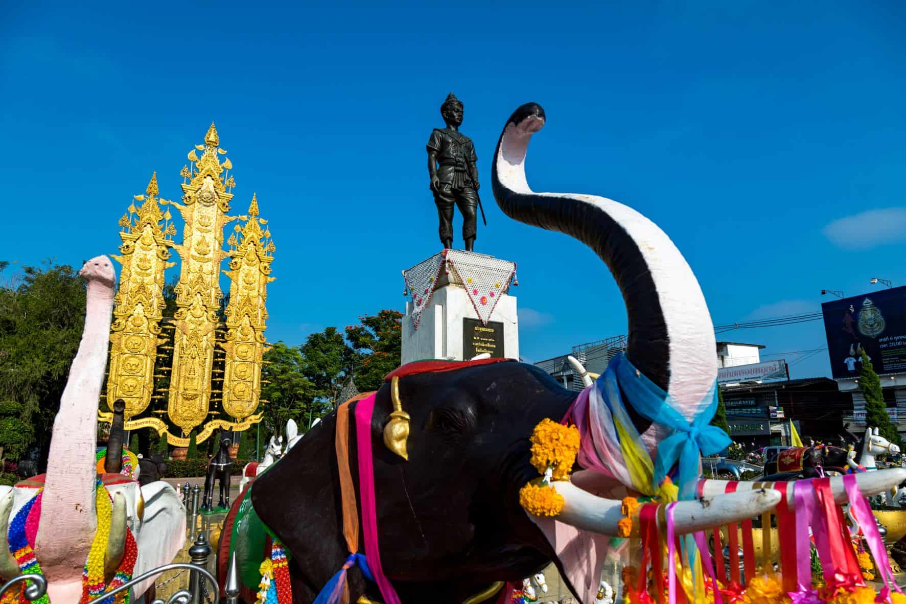 The statue of Phaya Mengrai the Great stands proudly at the Pho Khun Intersection, serving as a poignant tribute to his esteemed legacy. Crafted from noble bronze, this monument portrays him in regal attire, wielding a sword, and adorned with traditional Lanna regalia atop a majestic pedestal, towering approximately 3 metres high. Phra Khun Mengrai, the 25th monarch of the Lua Changkharat Dynasty, was born in 1239 and died in Chiang Mai in 1311, as the offspring of Phraya Lao Meng and Phra Nang Thep Kham Khaeng, or Phra Nang Ua-ming Chom Mueang. He built the city of Chiang Rai on Doi Thong from the original foundation that used to be a city in 1262. Under his reign, Chiang Rai prospered, becoming the thriving heart of the Lanna Thai kingdom.