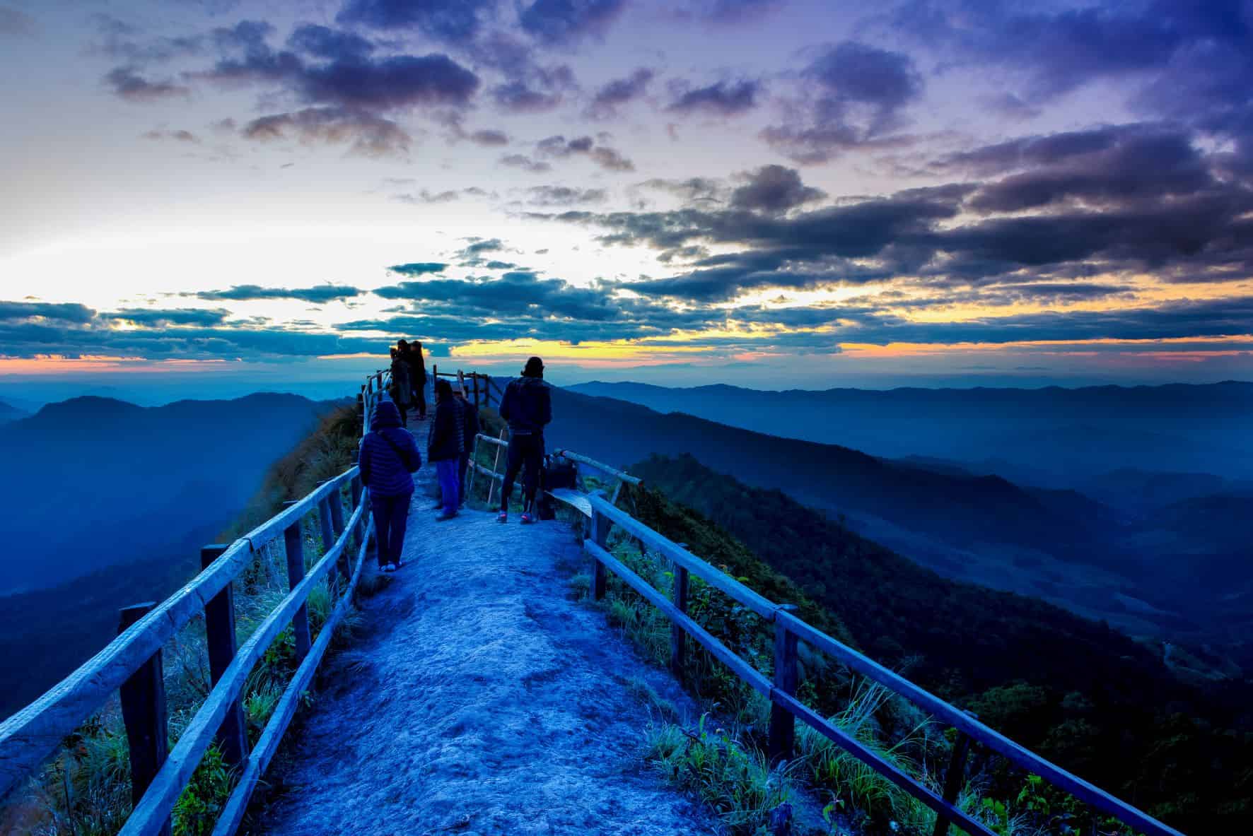 Pu Chi Dao is located in Ban Rom Pho Ngoen, Po District, offering a 360-degree panoramic view of the sea of mist, with a stunning backdrop of mountains and the Mekong River. It is situated 10 kilometers away from Pu Chi Fa, and access to the viewpoint requires a four-wheel-drive vehicle. Service Rates: Car (four-wheel-drive) fee: 100 Baht per person Car rental service fee: 500 Baht per vehicle Tent rental fee: 200 Baht For further details contact , Po Subdistrict Administrative Organization Tel. (66) 5360 2742 or the guides/drivers at Tel. (66)8 0034 3984, (66)8 2184 0504.