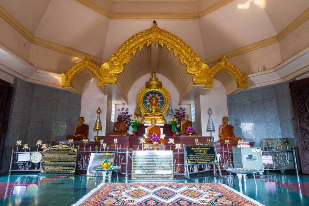 Situated on Suebsiri Road in Nai Mueang Subdistrict, began its journey as a monastic centre in 1931. The temple was named “Wat Pa Salawan” by Somdet Phra Mahaweera Wongsa (Oun Tisso), holding the ecclesiastical title Phra Phrommuni at the time, inspired by the dense Tengrang forest where the temple was established. Later, Luang Pho Phut Thaniyo came to practice Dhamma and resided as the abbot from 1970. He developed the temple in every aspect to facilitate those seeking spiritual practice. After Luang Pho Phut passed away in 2000, a memorial stupa, “Buraphachariya Chedi,” was erected. Inside the stupa are enshrined the Buddha’s relics, relics of Buraphachariya (great teachers), and those of Luang Pho Phut. Statues of Luang Pho Phut Thaniyo and other revered Buraphachariya; such as, Luang Pu Sing, Luang Pu Sao, and Luang Pu Man, are present for devotees to pay their respects. Surrounding the stupa are low-relief sandstone sculptures depicting Luang Pho Phut, Buraphachariya, and various Buddhist narratives. These elements combine to make Wat Pa Salawan not only a place of worship but also a site of historical and cultural significance.