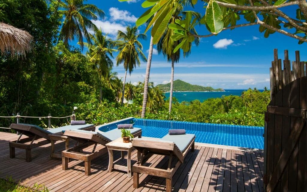 Escape to the secluded luxury of Anankhira Villas, a beautiful property perched above Koh Tao’s main strip, Sairee Beach. This convenient location is the perfect base for exploring the island, with exquisite Balinese-style chalets that each feature a private plunge pool. You’ll enjoy peace and privacy at Anankhira, with the added convenience of being close to the beach. While the distance to the beach isn’t far, there are a lot of steps, so be prepared for a bit of a walk. But the stunning views and luxurious accommodations at Anankhira Villas make it worth the effort.