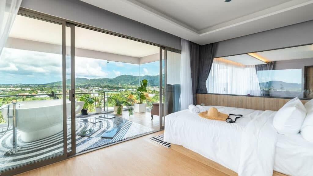 The resort also offers a range of on-site facilities, including a 26-meter-long swimming pool on the rooftop with views of Chalong’s skyline and the Andaman Sea, a car park, and high-speed Wi-Fi in public areas. Guests can also take advantage of the fitness center, spa, lake activity, minimart, and restaurant.