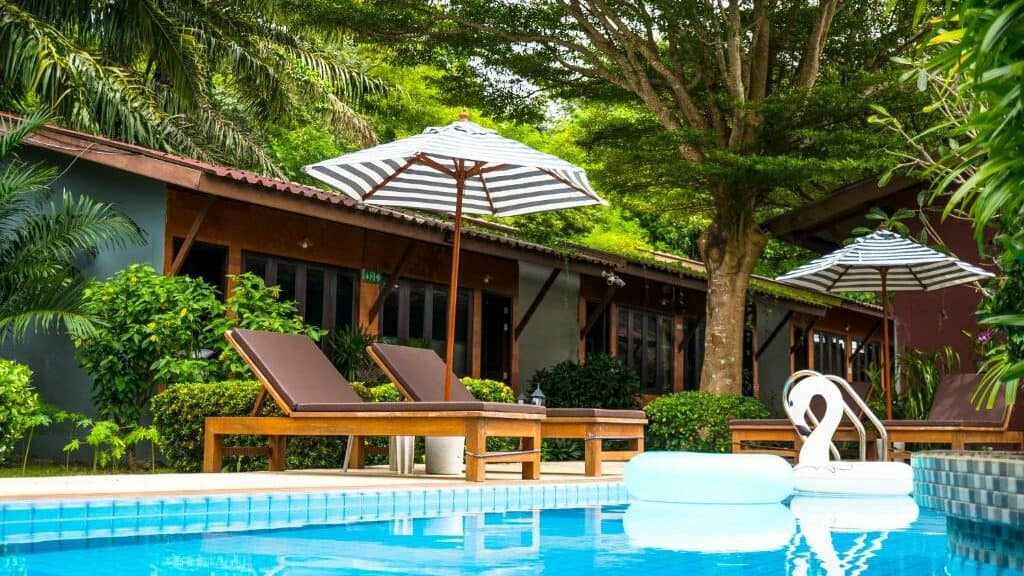 Cocoville Phuket is located near to Tiger Muay Thai, conveniently in the centre of the soi. It has an excellent restaurant on-site with plenty of healthy food options. It’s well known for being one of the better resorts on the soi.