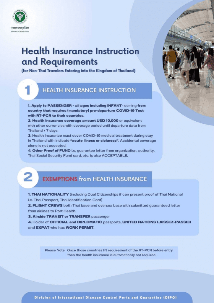 | Passengers holding Thai passports are exempt from having documents checked for vaccination and health insurance. |